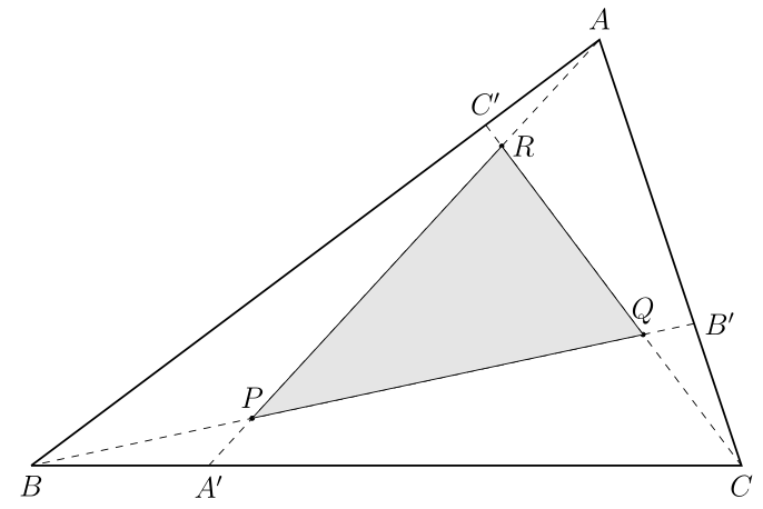-\Vert\triangle BA'P\Vert-\Vert\triangle CB'Q\Vert-\Vert\triangle AC'R\Vert
