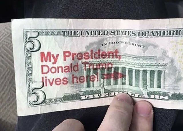 Some MAGA idiot is stamping this on $5 bills, thinking the Lincoln Memorial is the White House. 🤣🤣
