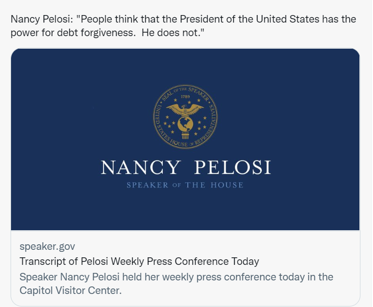 Ļ鳤ȥ˵ġͳȨڵծDZᷨPeople think that the President of the United States has the power for debt forgiveness. He does not. He can postpone, he can delay, but he does not have that power. That has to be an act of CongressġͳȻǰǡڹ͵ԱѾдҪ鳤͡